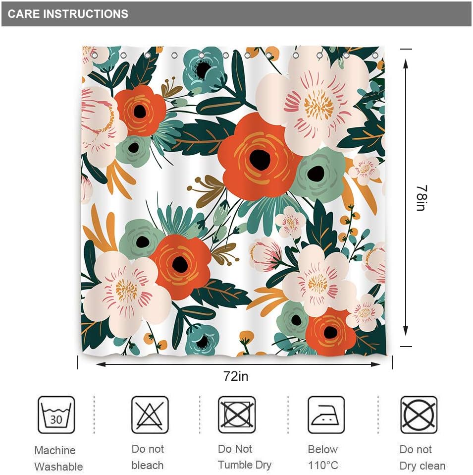 Riyidecor Spring Flower Shower Curtain Set Season Floral Green Bathroom Decor Fabric Panel Polyester Waterproof 72x78 Inch With 12 Pack Plastic Shower Hooks Shower Curtain Sets